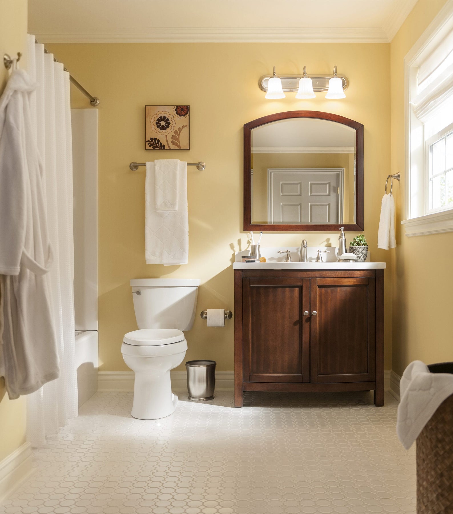Bring timeless warmth to your bath—add the Shaker Park 3-light vanity bar to your cart today.