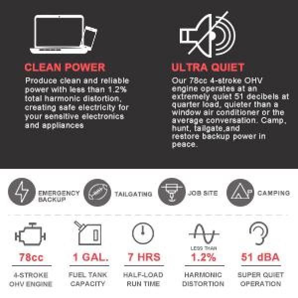 • 79 cc engine provides 2000 surge watts and 1700 rated watts