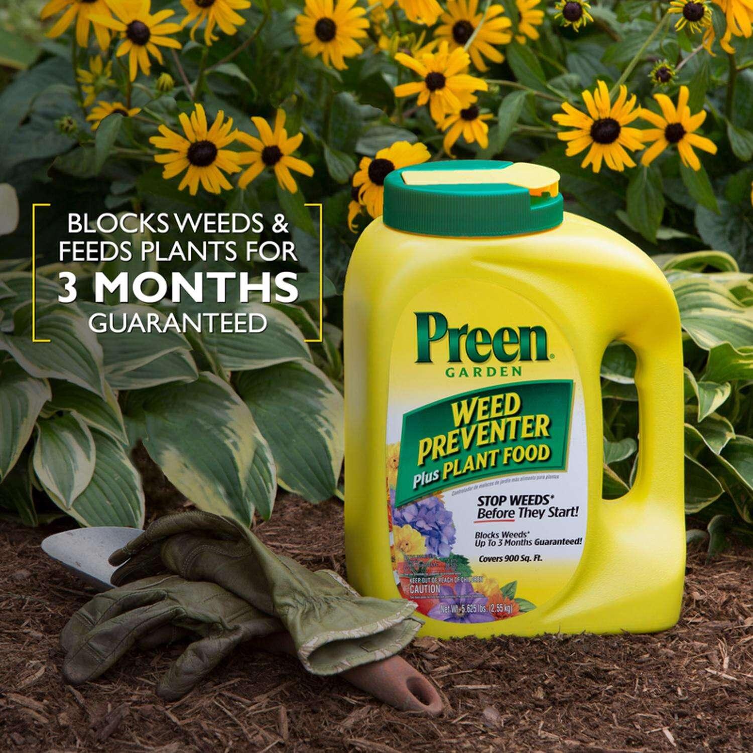 Garden Weed Preventer plus Pplant good prevents weeds and feeds plants in one easy step. Balanced fertilizer promotes abundant blooms, increased yields and strong root development. Safe for use around over 200 established flowers, vegetables, trees and shrubs. One application fertilizes your plants and prevents weeds for up to three months.