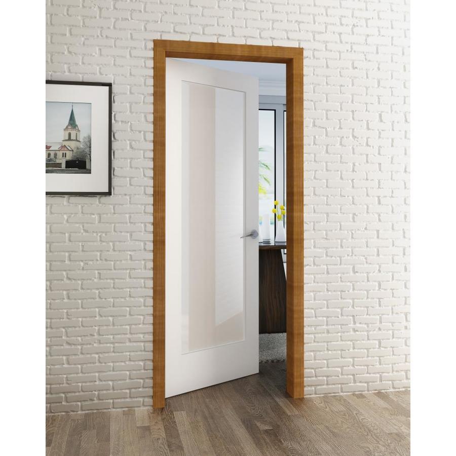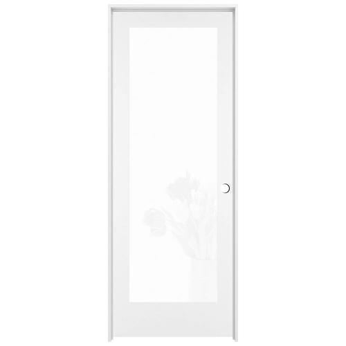 American Building Supply Shaker 30-in x 80-in Primedwhite 1-Panel Square Frosted Glass Solid Core Primed Pine MDF Left Hand Inswing Single Prehung Interior Door