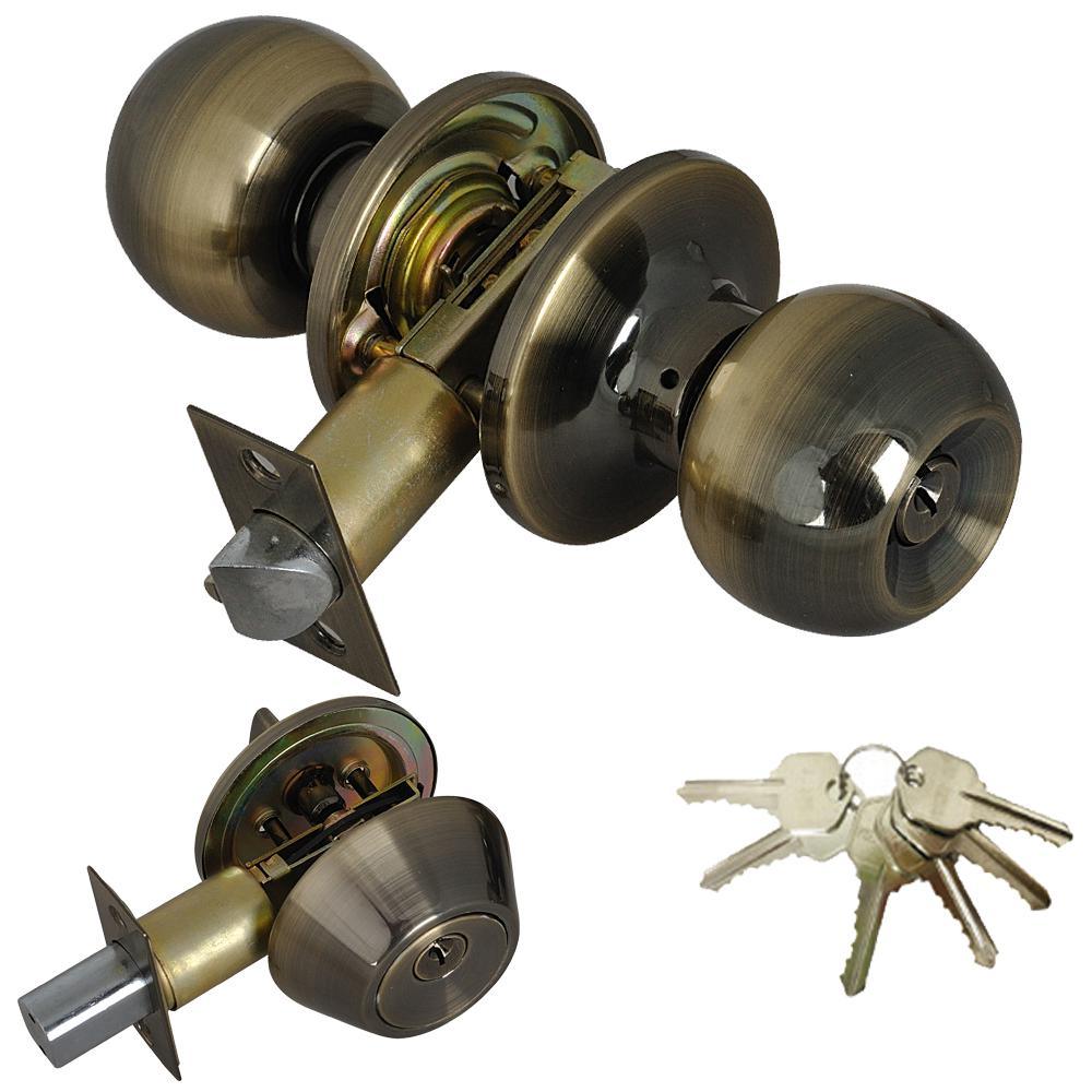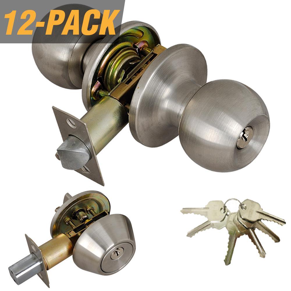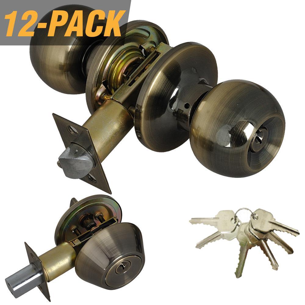 Antique Brass Entry Door Knob Combo Lockset with Deadbolt and 6-Keys, Keyed Alike (12-Pack)