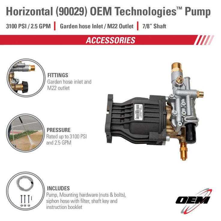 • Designed to fit most makes and models of cold water gas pressure washers with horizontal engines