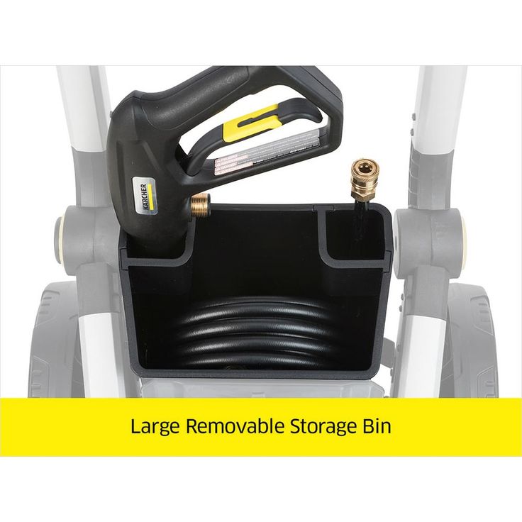 Performance, value, convenience. The new Karcher K1910 electric pressure washer delivers best-in-class, consumer-driven features to improve the way we clean. Integrated metal extrusions, over-sized wheels and overall robust design allows you to take the product where you need to go. Key ease-of-use features include high cord wind, tall handle, bucket storage bin, space-saving rotating handle, removable detergent tank and an innovative on/off foot switch. Universal quick-connect wands and standard M22 hose connections simplify nozzle and accessory usage.