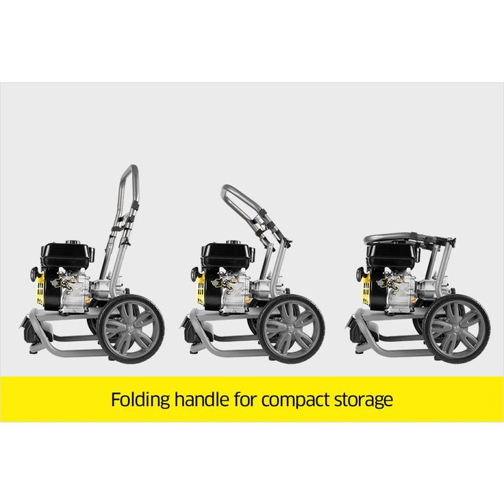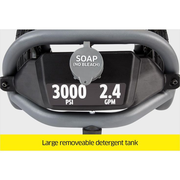 You name it, you aim it. Developed for superior performance, this gas pressure washer powers through your toughest cleaning tasks. The Karcher G 3000 X blasts up to 3000 PSI and 2.4 GPM using a Karcher KXS 196 cc engine. This user-friendly, easy-to-start pressure washer features a removable 1.5-gallon detergent tank, four spray nozzles, oversized 12 in. wheels and onboard accessory storage so you can get the job done with ease. Enjoy easy access to all the hose connections. No tools are required to set up this powerful unit. It all-welded steel frame is rugged. Universal quick-connect nozzles and standard M22 hose connections simplify nozzle and accessory usage.