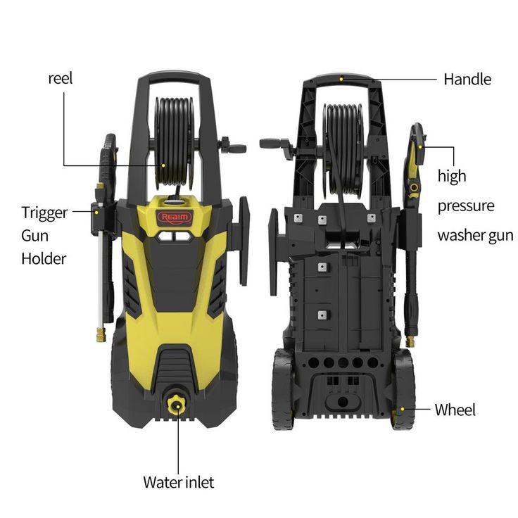 Regular price $289.00Realm electric pressure washer BY02-BCMR efficiently cleans siding, driveways, cars, patio furniture and lawn equipment with the power of pressurized water jets. It has the most advanced pump with double sealing to ensure good quality. Maximum 2450 psi and 1.75 GPM gives this unit the power to spray and scrape away grit and grime with ease. A 120-Volt, 14.5 Amp universal motor is lightweight and reliable. The energy-saving auto stop function automatically shuts off the pump when the trigger gun is not engaged, prolonging the life of the pump. All of the connectors use the quick connector: includes the connector between the hose and gun, between the gun and machine, between the gun and the different nozzles, brush and patio cleaner. So you can easily assemble the machine. It provides varies sets of optional accessories for different demands, such as adjustable telescopic rod, snake hose cleaner, turbo nozzle, angle nozzle, brush and patio cleaner. This pressure washer includes a 25 ft. H pressure hose, a high pressure gun with 5 spray nozzles, a built-in soap dispenser, a 35 ft. GFCI-equipped power cord, all of which can be stored conveniently.