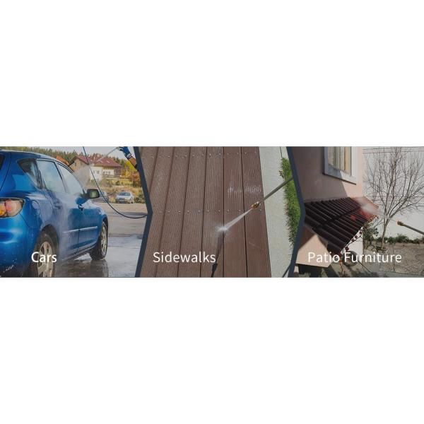 - 【DIFFERENT PRESSURE WASHER NOZZLES】: 5 quick-connect spray tips (0, 15, 25, 40 and soap) make incredible cleaning of all types of vehicles, boats, patios, home, siding, driveways, outdoor furniture and more, it easily gets rid of dirt, grime, gunk, oil, rust, sand and other tough spots