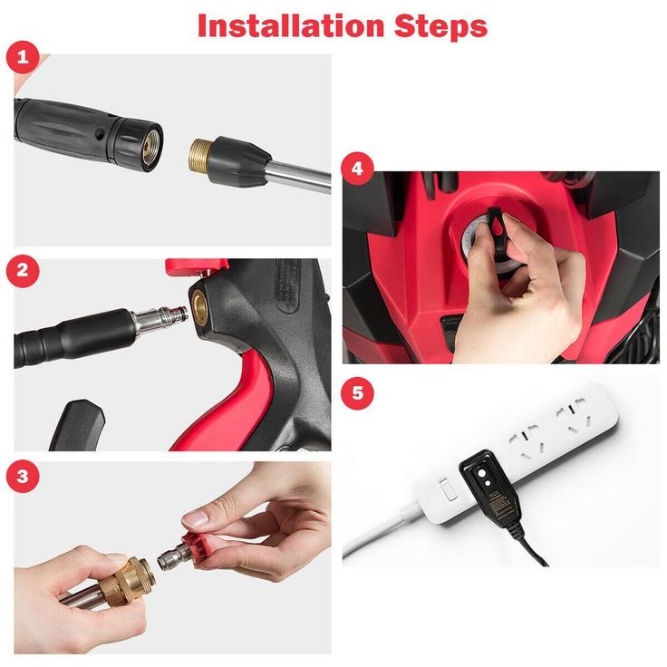 - Package includes: 1 x high pressure washer, 5 x nozzle, 1 x instructions