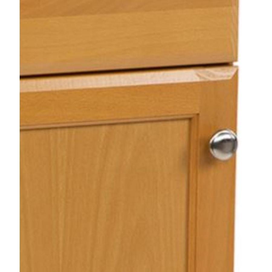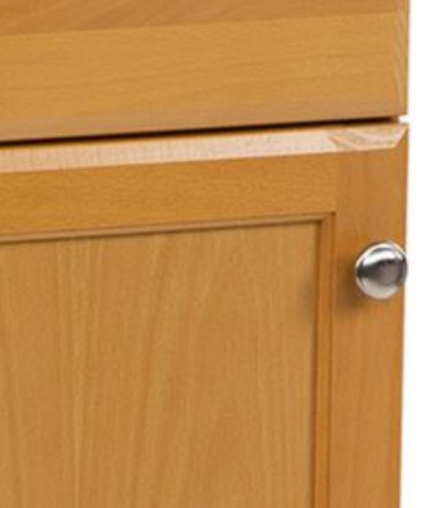 • Durable Build: Engineered wood cabinet with stained golden finish and brushed nickel hardware
