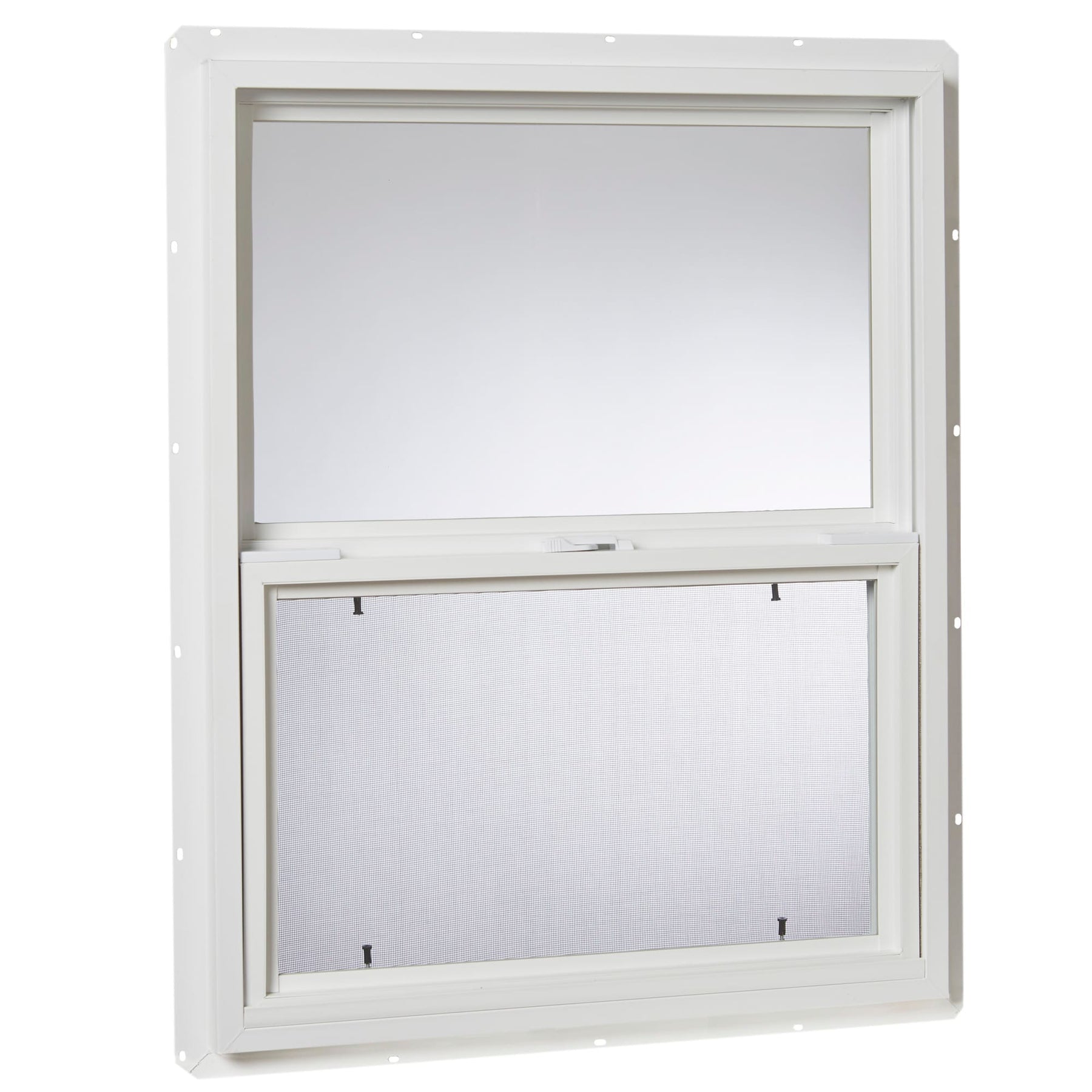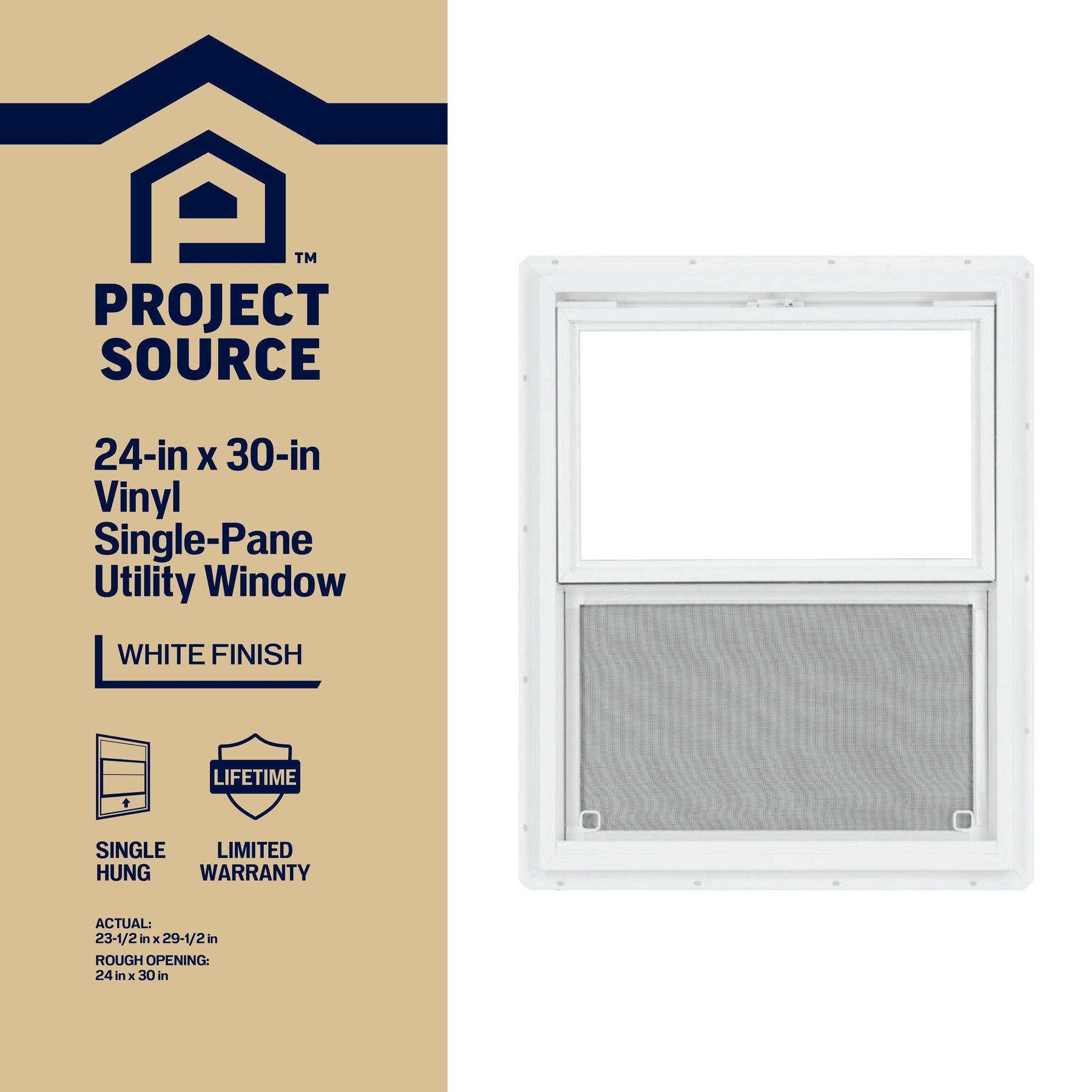 Project Source 20000S Series New Construction 23-1/2-in x 29-1/2-in x 2-1/4-in Jamb White Vinyl Single-Pane Single-Hung Window, Half Screen Included