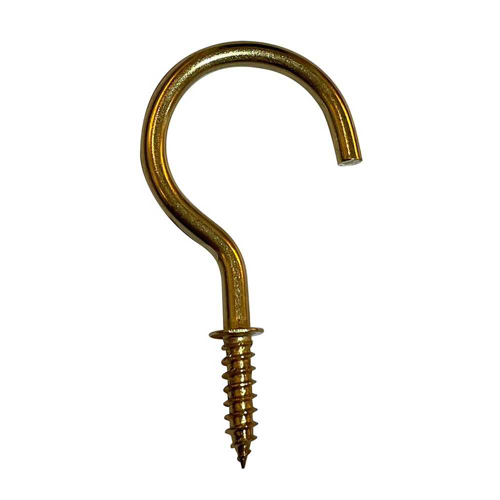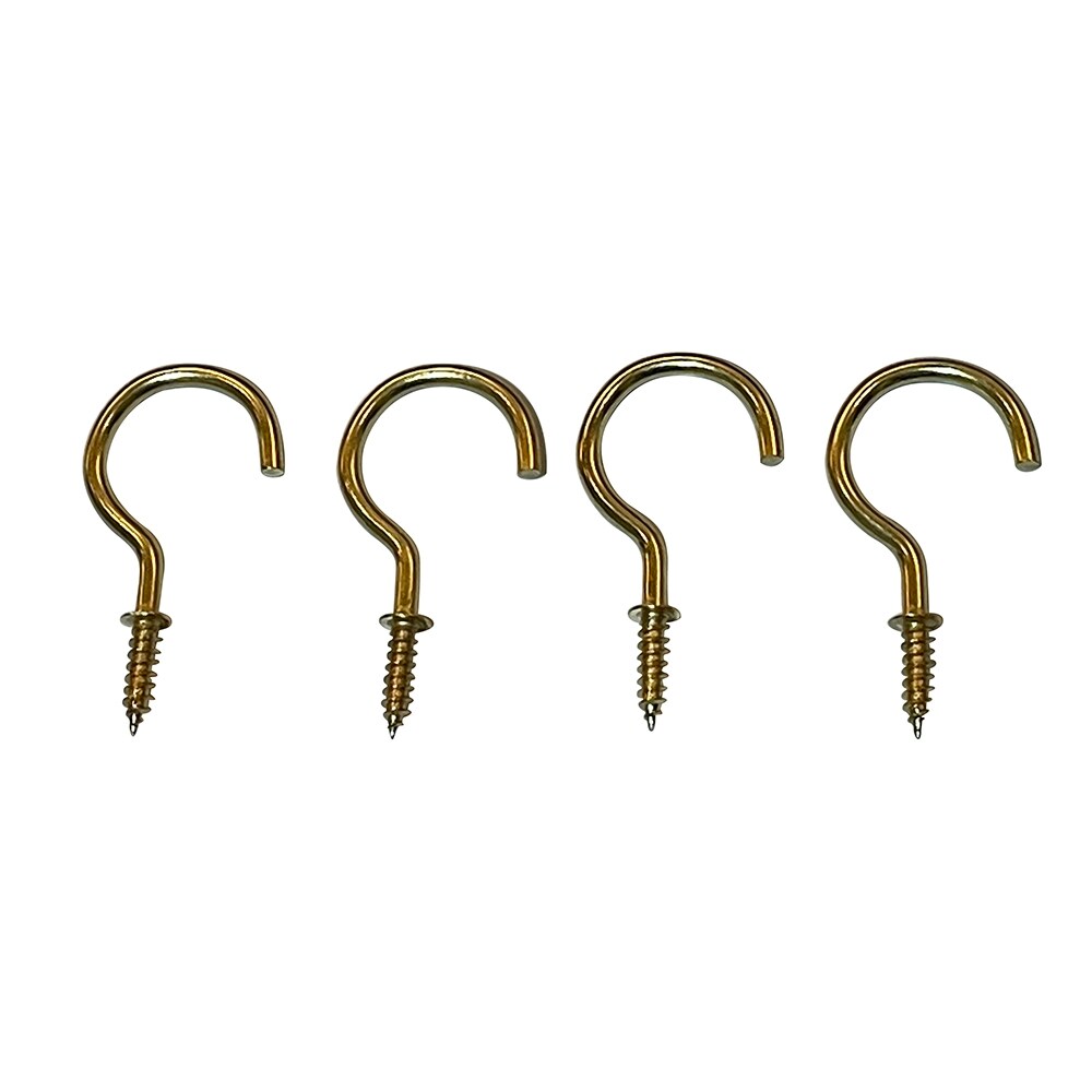 Durable steel cup hooks with a brass finish for quick, reliable hanging. Each hook installs easily with a screw-in design and measures 2.07 in deep by 1.07 in wide, ideal for mugs, keys, and light accessories.