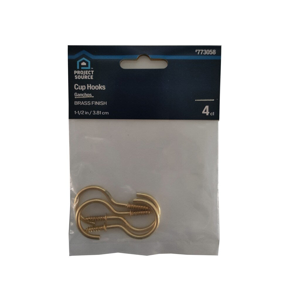 Project Source 4-Pack Brass Cup Hooks, 1.5-in (2.07-in depth) Steel
