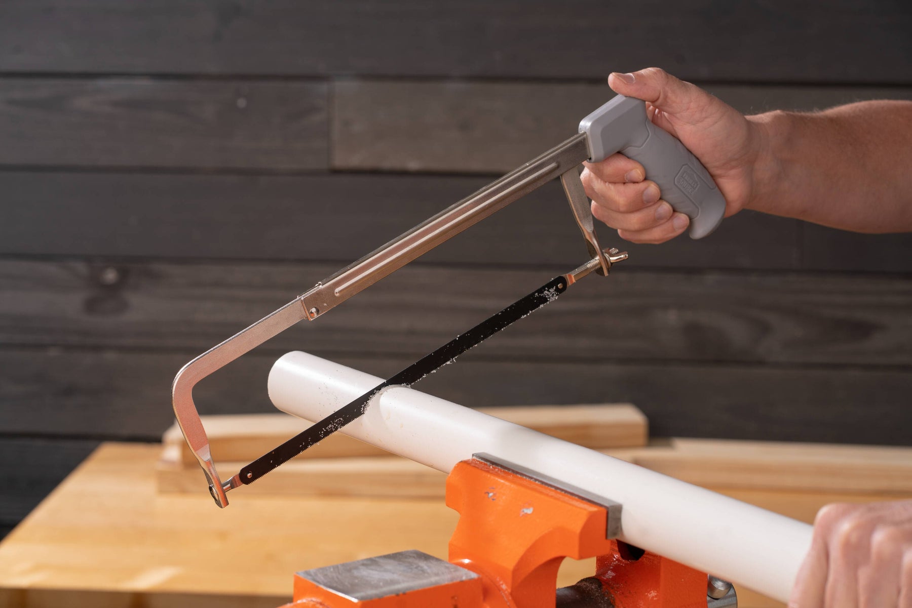 A lightweight, adjustable-frame hacksaw designed for clean, precise cuts. Heavy-duty steel frame with a comfortable ABS grip accepts 10-in and 12-in blades, ideal for metal and plastic applications.