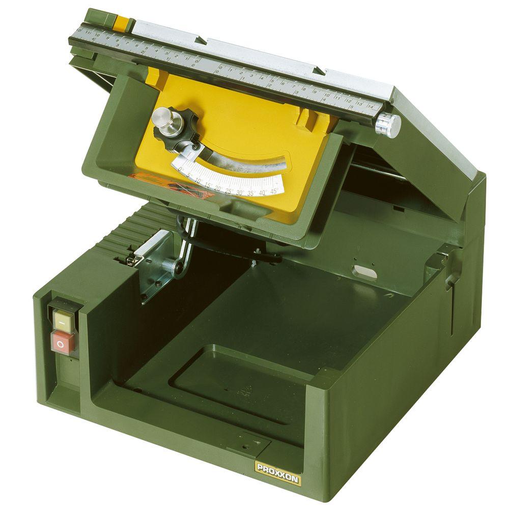 The Proxxon Table Saw FET provides perfectly straight cuts. Designed for fine mechanics, model building, mould construction, toy manufacture, architects, model carpenters and fitters. Appropriate for cutting wood, non-ferrous metals, plastics, Plexiglas, glass fiber reinforced sheets, foam and many other materials. Stable construction because load bearing parts and plane-milled table are made of die-cast aluminum.