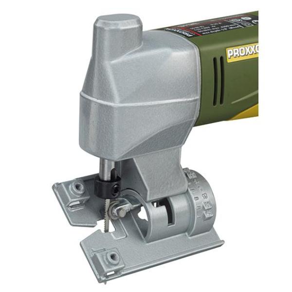 The Proxxon Super Jig Saw SS 115/E offers fantastic cutting capacity with the footplate adjustable up to 45° for miter cuts. The full wave electronic speed control allows for consistent power and cutting force throughout the variable speed control range. This tool is ideal for cutting tight curves in wood, non-ferrous metals, and plastics.