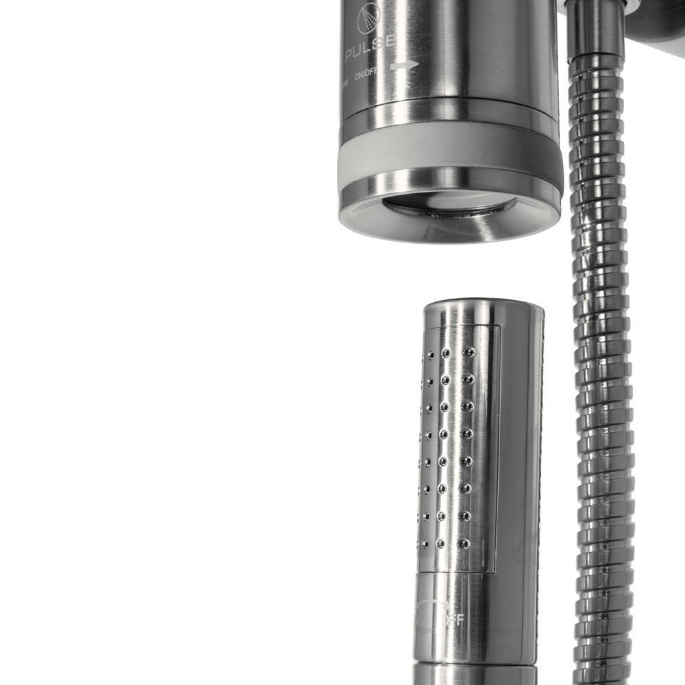 The Aquarius Shower System from PULSE ShowerSpas replaces your existing showerhead with an oversized rain showerhead and multi-function hand shower. The integrated dual-function diverter allows you to use each function independently. Typical install is less than 1 houreven for the do it yourselfer. It simply connects to the water supply at your existing showerhead location and uses your existing hot/cold shower valve.