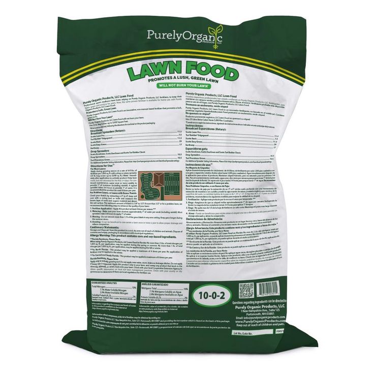 Regular price $22.78Lawn Food 10-0-2 from Purely Organic Products is made of natural ingredients, like distillers grains and soy; and it's specially formulated to provide the nutrients needed to promote a lush, green lawn for you and your family. The slow-release nutrients in Purely Organic Products Lawn Food won’t burn your lawn and can be used throughout the growing season. This 25 Pound Bag covers up to 5,000 Square Feet. Purely Organic Products Lawn Food contains no harsh chemicals, and no smelly manure or biosolids. The plant-based formula feeds the soil providing exceptional results and thick, green grass in a wide range of geographical areas and climates.