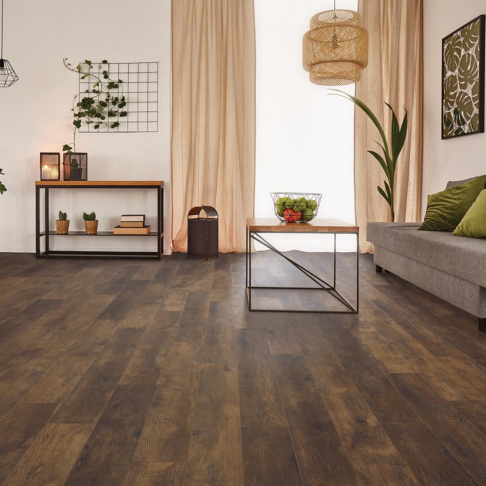 Frontier Oak brings a moody, burnished warmth that instantly grounds a room with quiet sophistication. The embossed grain and beveled edges play with light, creating depth and an artisanal, timeworn character. Pair it with matte black accents and woven textures for a nuanced contrast, or run it up a feature wall to add architectural drama. It’s a chic foundation that makes everyday living feel luxuriously composed.