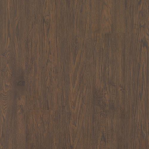 Explore the rich, chocolate-toned Whiskey Hickory laminate with an embossed wood-grain texture from QuickStep Studio. This 10mm, click-lock sample showcases the look of beveled wood planks with attached underlayment for easier installation and improved sound control.