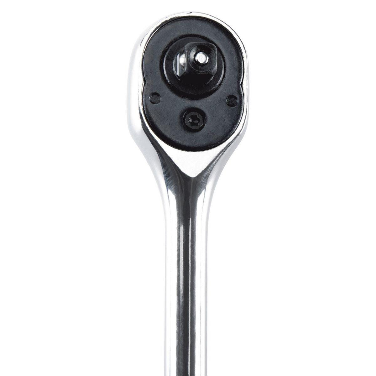 This high visibility 1/4 in. socket set features easy-to-read markings so you spend less time looking for the right socket and more on the task at hand. The rugged chrome vanadium SAE and metric set includes a quick-release ratchet with reversible 72-tooth gearing and a cushion grip to reduce hand fatigue. Triple chrome plating helps fight rust and corrosion.