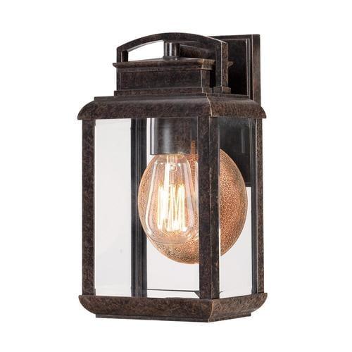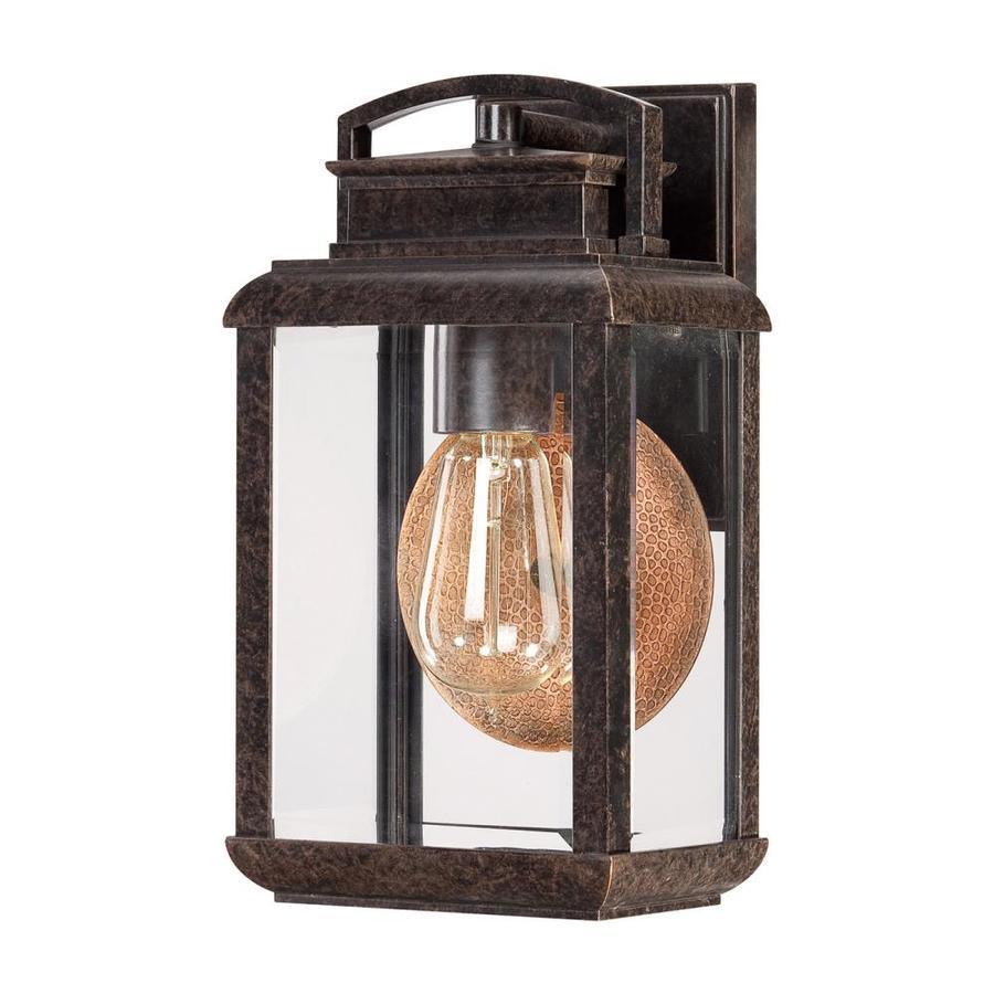 Bring vintage charm and reliable illumination to your exterior with the Quoizel Byron wall lantern. Finished in Imperial Bronze with clear beveled glass, it features a copper-hued interior plate and includes a Victorian-style bulb for a historic look. Wet-rated and hardwired, it’s built for long-lasting outdoor performance.