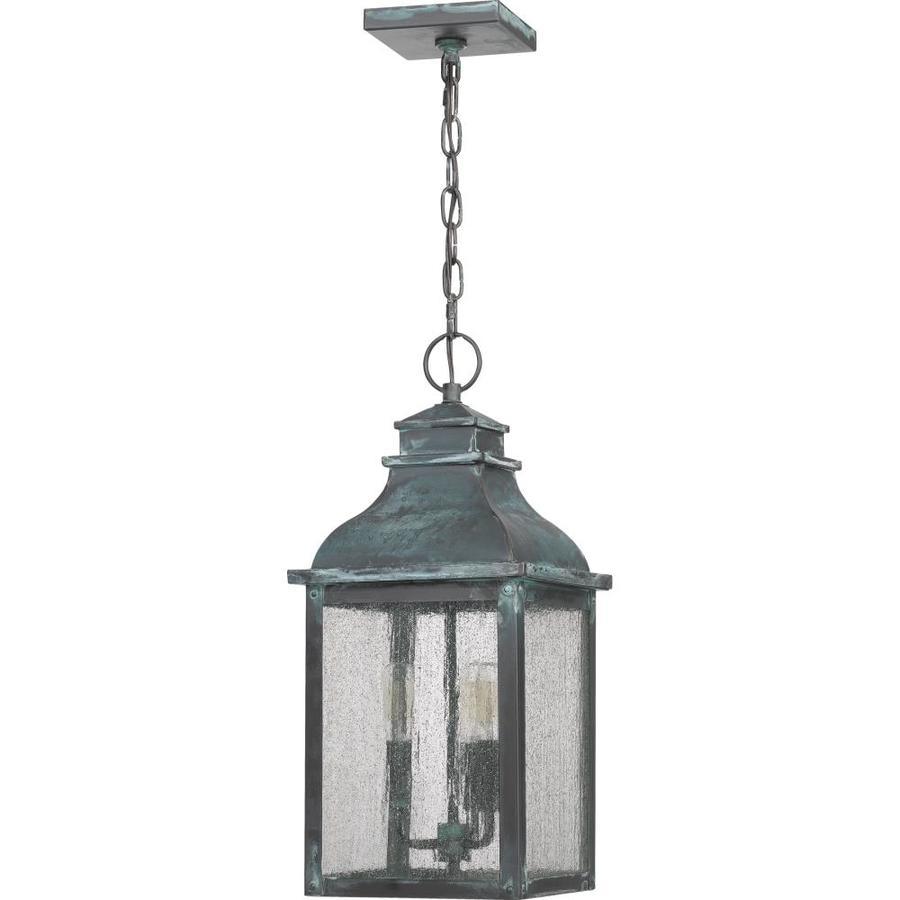 Quoizel Branson Aged Verde Seeded Glass Lantern Pendant