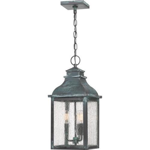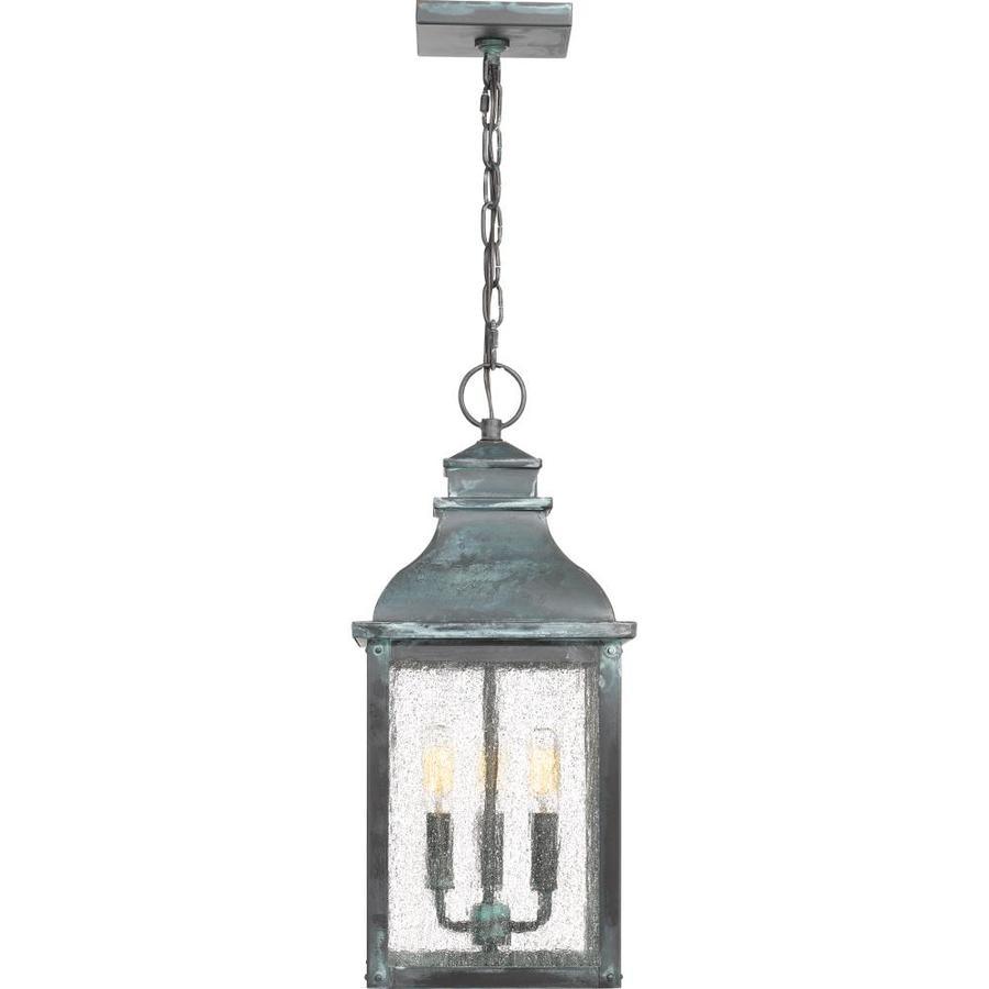 Quoizel Branson Aged Verde Traditional Seeded Glass Lantern Pendant Light, 3-Light, 9-in Wide