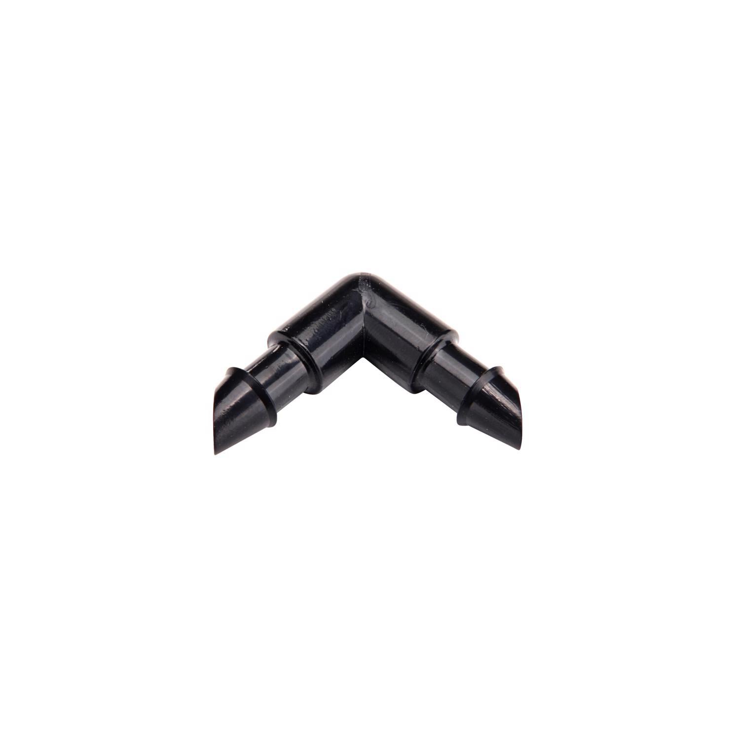 Create clean 90-degree turns in 1/4 in. drip lines with these single-barbed elbows. Durable ABS plastic fits 0.170 in. ID tubing and handles up to 50 PSI for reliable garden and landscape watering.
