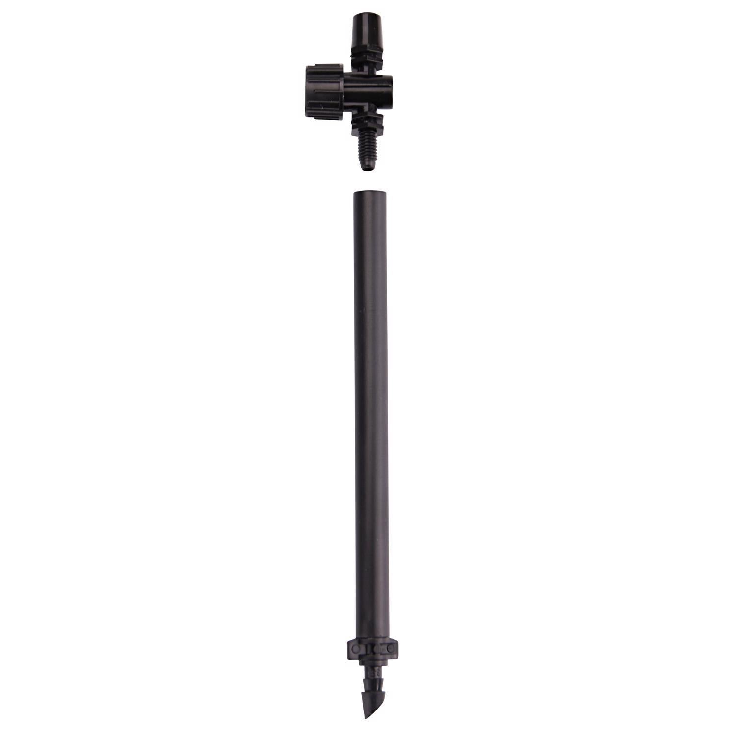 This Raindrip micro spray mister delivers a fine, full-circle fan spray ideal for cooling and humidifying plants in hanging baskets, greenhouses, and atriums. Preassembled with a 4 in. barbed riser, it connects to 1/4 in. supply tubing and adjusts from a light mist to a heavier spray delivering up to 7 GPH.