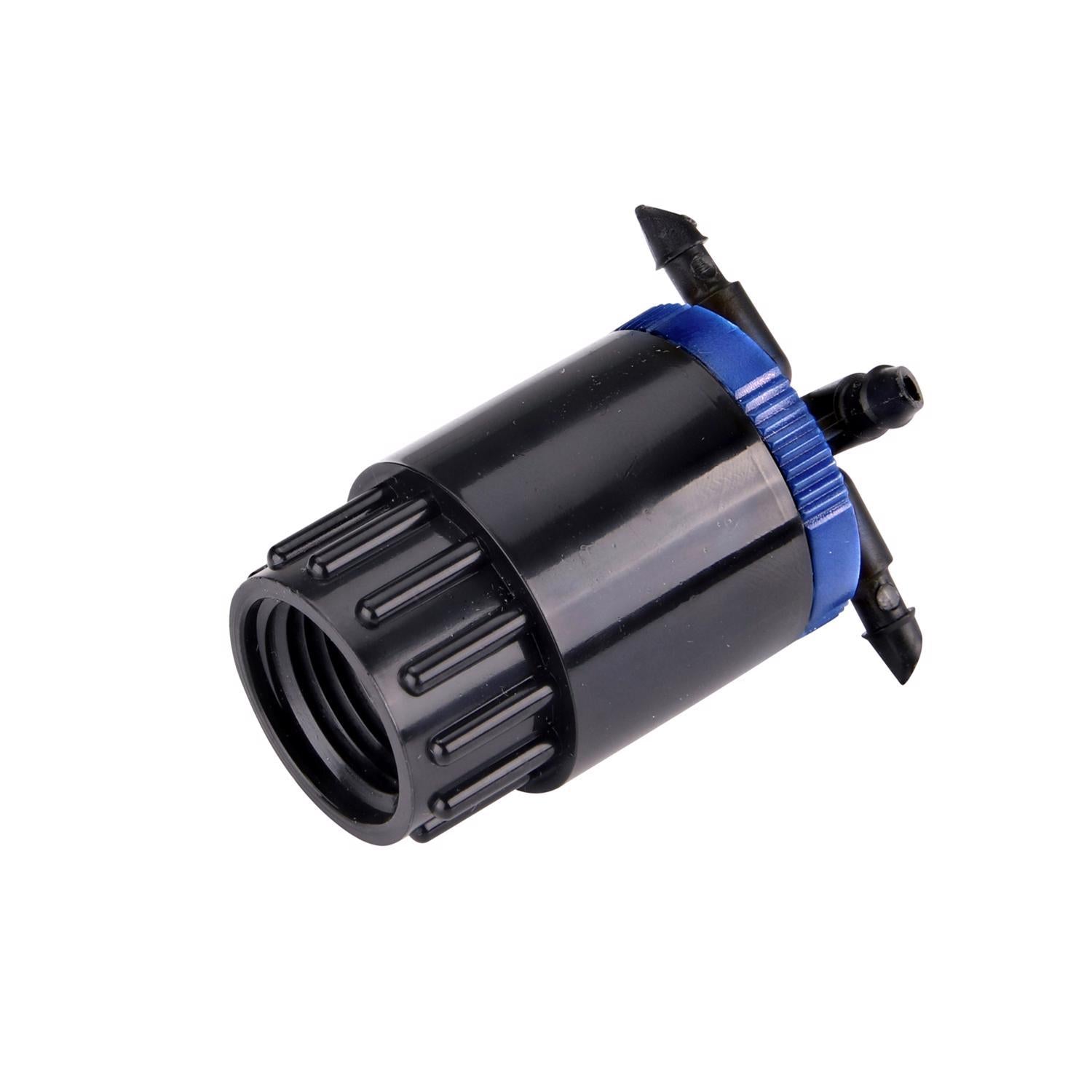 Convert a sprinkler riser into precise drip watering with the Raindrip Cuatro-Flo Bubbler. This pressure-compensating emitter delivers 2 GPH per outlet to up to four plants, connecting easily to 1/4 in. supply tubing for targeted irrigation.
