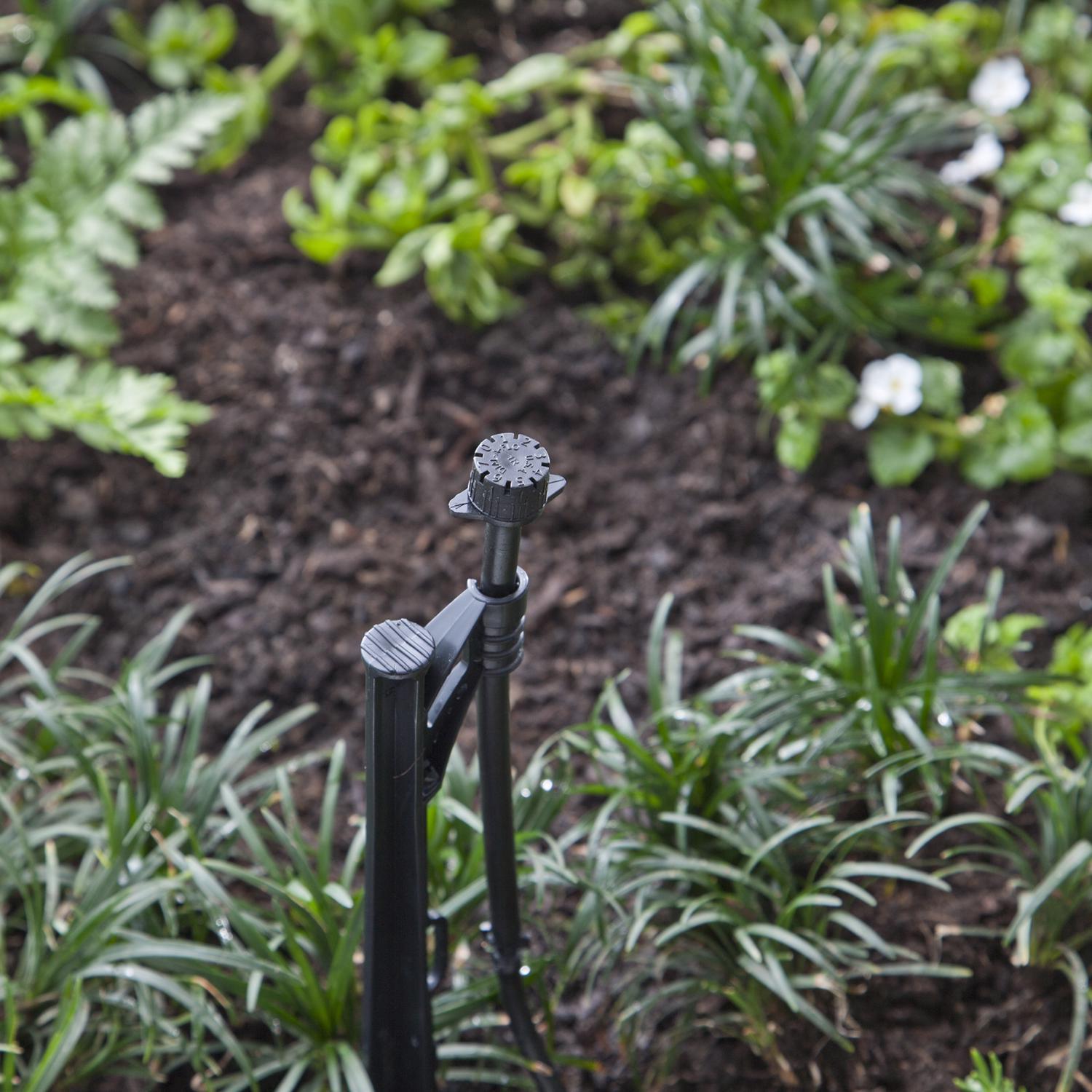 - Compact Stake Assembly: 14.5 in. height keeps emitter elevated above mulch and debris