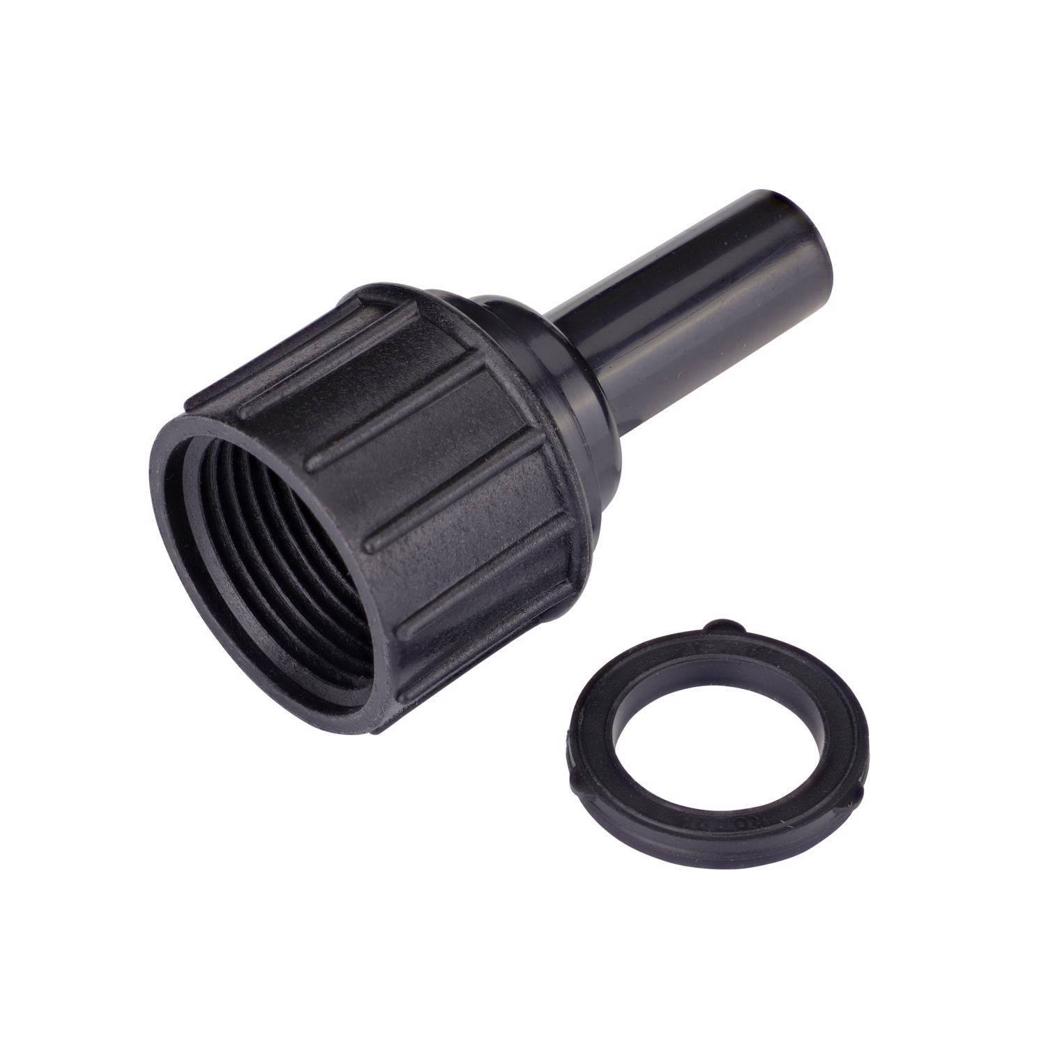 - Secure, Watertight Connection: Compression fitting with internal barb holds tubing without stretching