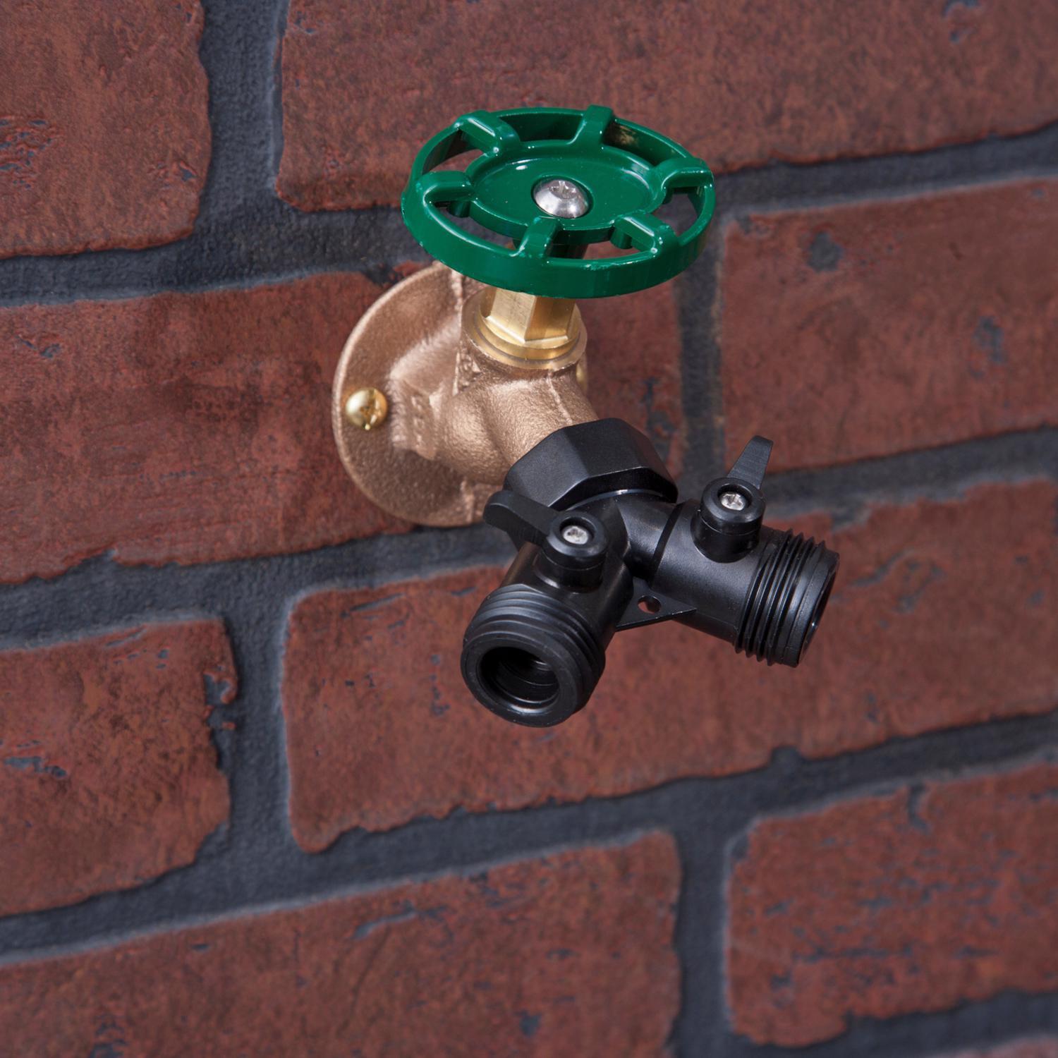 • Easy Connection: 3/4 in. FHT inlet threads onto standard hose bibbs; dual 3/4 in. MHT spigot outlets