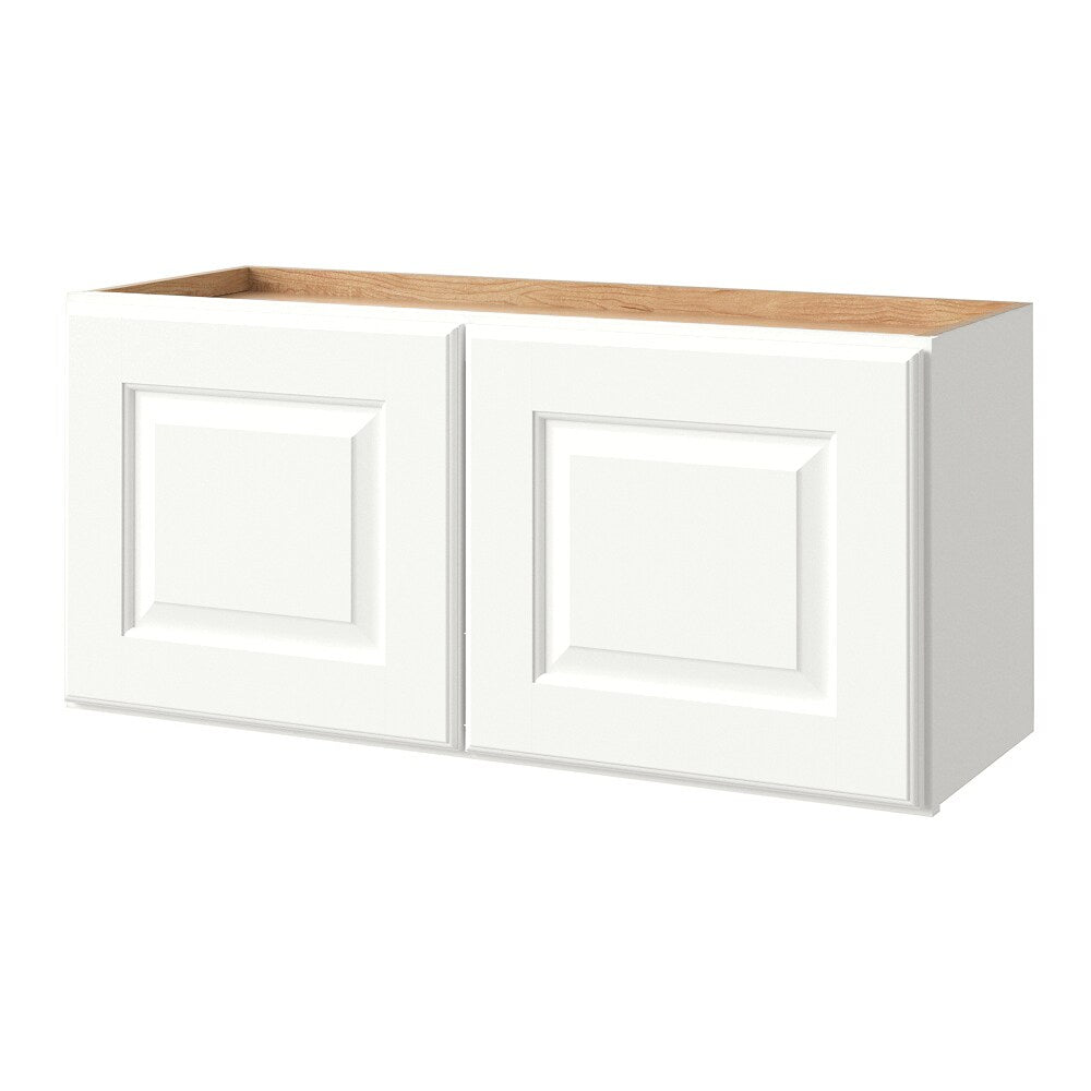 Transform your space with the allen + roth Tilson Linen Wall Cabinet, featuring a raised panel square door style for a traditional yet modern touch. This fully assembled piece ensures ease of installation and is crafted from superior materials for durability and beauty that lasts.
