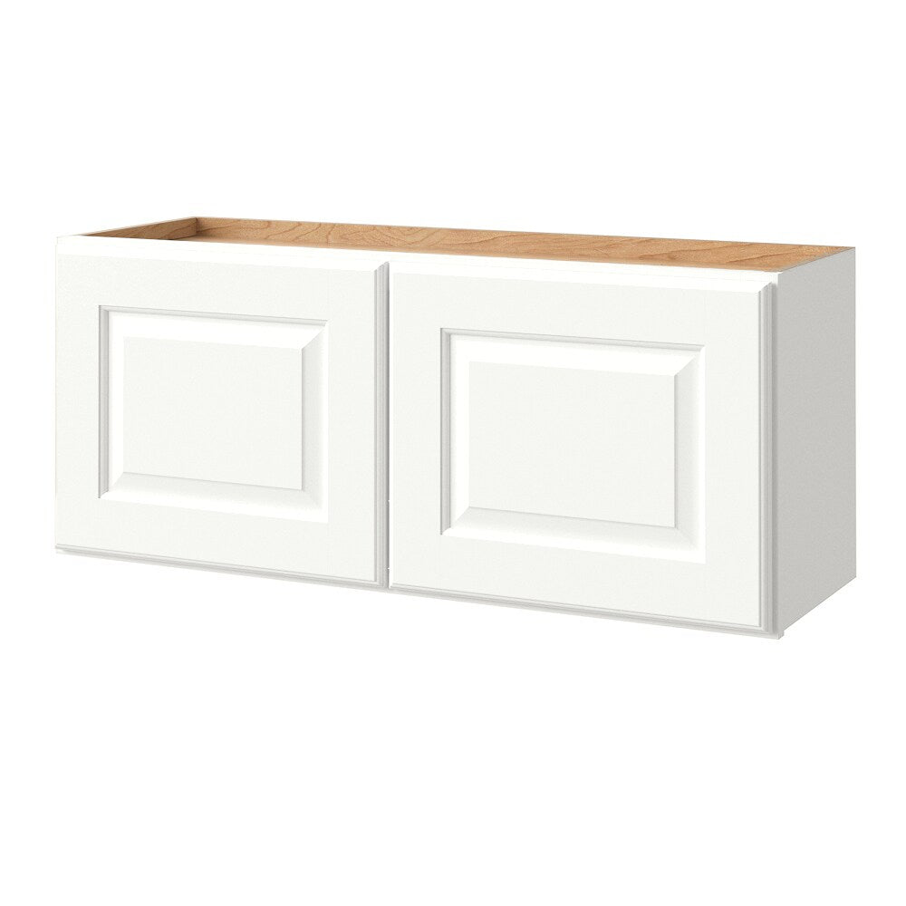 The Tilson Linen Wall Cabinet by allen + roth offers a seamless blend of style and functionality with its raised panel square door design and soft-close doors. Its durable construction features a painted finish over hardwood and engineered materials, ideal for creating a timeless look in any home.