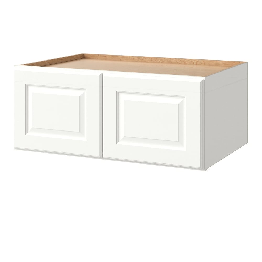 The allen + roth Tilson Linen Wall Cabinet adds a sophisticated touch to any space with its elegant raised panel design and seamless full overlay doors. Built for durability, it combines hardwoods and engineered materials with a stunning painted finish that promises long-lasting beauty. This fully assembled cabinet is a testament to quality craftsmanship, ideal for both professional installations and DIY projects.
