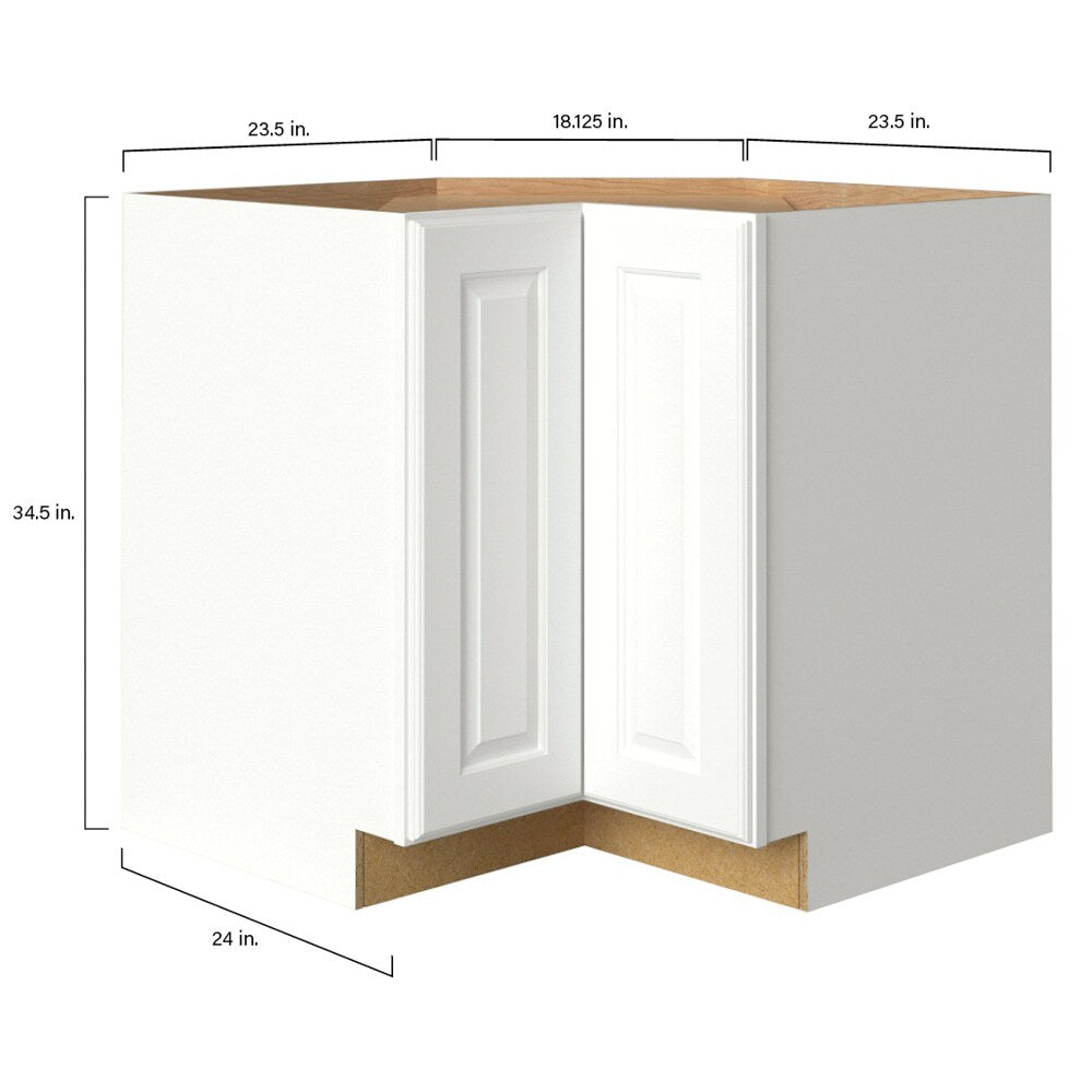 Enhance your kitchen or bathroom with the allen + roth Tilson L-Shaped Corner Base Cabinet. This fully assembled, linen-finished cabinet combines hard wood and MDF for unmatched durability and structural integrity. Its raised panel square style offers a modern and seamless look, perfect for any traditional home design.