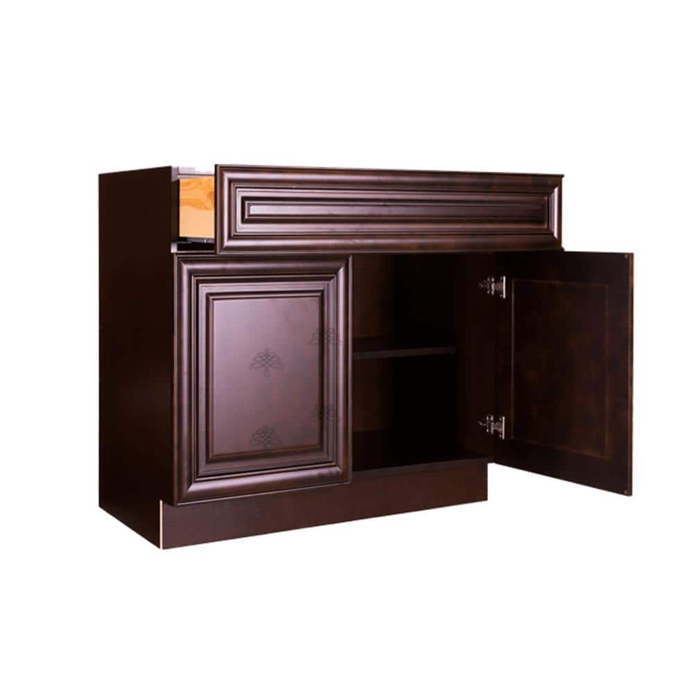LIFEART CABINETRY Edinburgh Espresso Plywood Raised Panel Stock Assembled Base Kitchen Cabinet (42 in. W x 34.5 in. H x 24 in. D)
