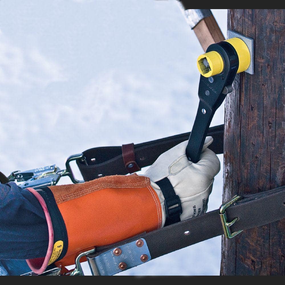 • Ratcheting Efficiency: Reversible ratchet speeds tightening and loosening on utility pole hardware