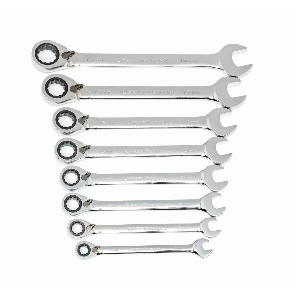 Metric Reversible Combination Ratcheting Wrench Set (8-Piece)