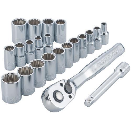 Includes 1/4-in drive ratchet, 1/4-in drive 3-in extension and (20) 1/4-in sockets