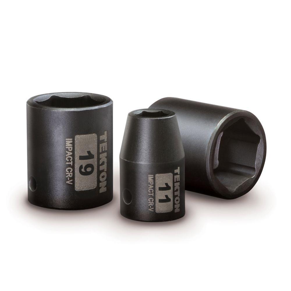 Built for use with impact tools, these TEKTON 3/8 in. Drive Shallow Impact Sockets fit in tight spaces to effortlessly break free rusty suspension and exhaust bolts, quickly remove stuck lug nuts, and loosen crank bolts with ease. TEKTON impact sockets efficiently transfer torque from impact wrench to fastener, loosening the most stubborn nuts and bolts. Made from high-strength chrome vanadium steel, our impact sockets are more resistant to drive end round out than standard impact sockets, resulting in a longer useable life. TEKTON impact sockets meet or exceed ANSI performance standards. The high-torque, 6-point socket grips the broad, flat sides of nuts and bolts, not just the corners, so there is no need to worry about stripping fastener head or damaging socket. The shallow socket design allows access to fasteners in tight spaces. Even in low light, the high-contrast, permanent laser etched size markings are easy-to-read. The customized red TEKTON case can be stored in a tool chest or carried to your job site. Molded size markings keeps set organized and identifies any missing sockets.