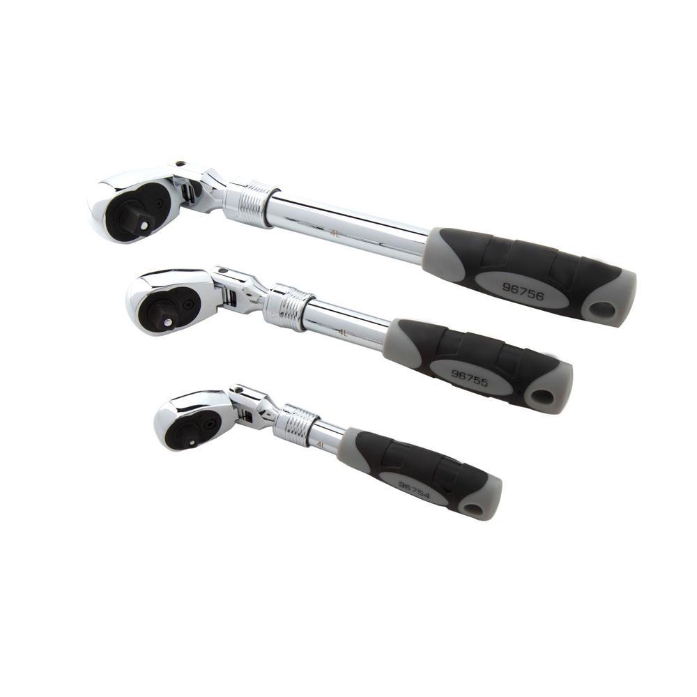 1/4 in., 3/8 in., and 1/2 in. Drive 72-Tooth Extendable Flex-Head Ratchet Set (3-Piece)