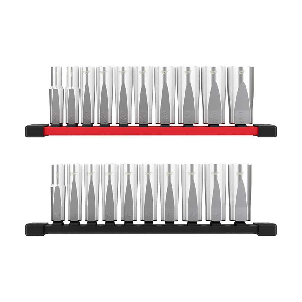 • Complete SAE & Metric Coverage: Two 10‑pc rails covering 5/16–7/8 in. and 10–19 mm