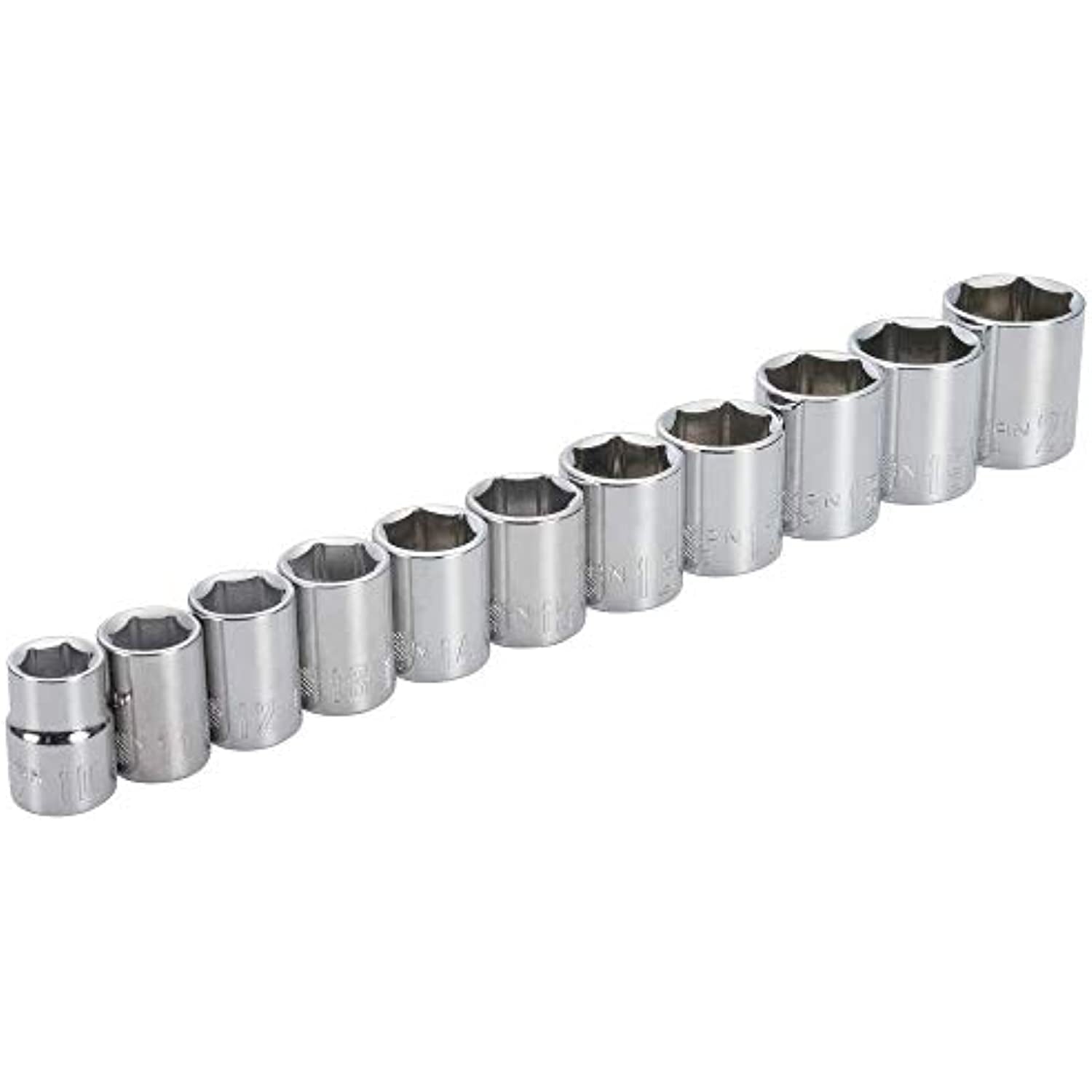 This 11-piece CRAFTSMAN socket set delivers reliable performance for automotive and DIY tasks. The 3/8-in drive, 6-point shallow sockets feature a full-polish chrome finish for corrosion resistance and large size markings for quick identification.