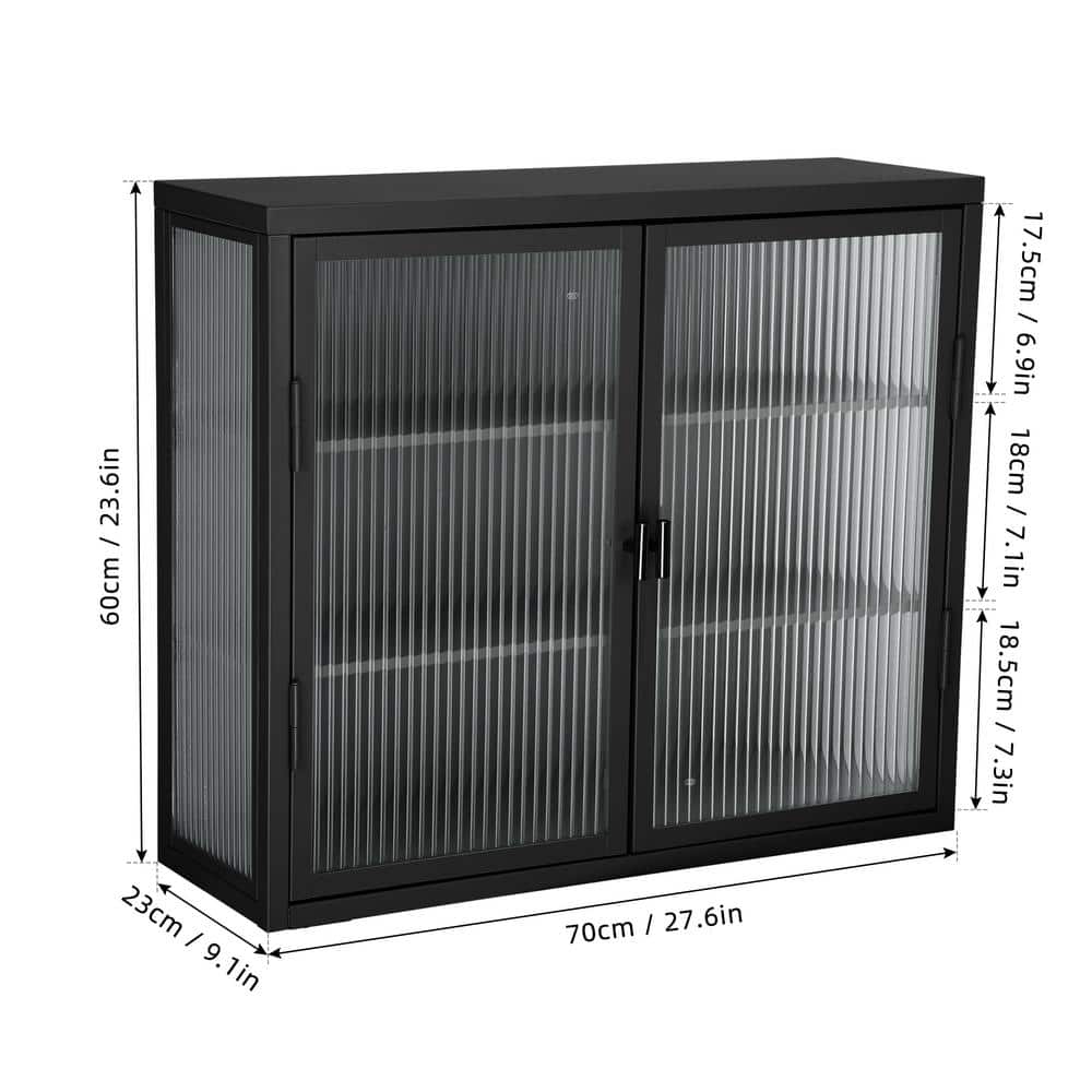 27.6 in. W x 9.1 in. D x 23.6 in. H in Black Metal Ready to Assemble Wall Kitchen Cabinet with Detachable Shelves