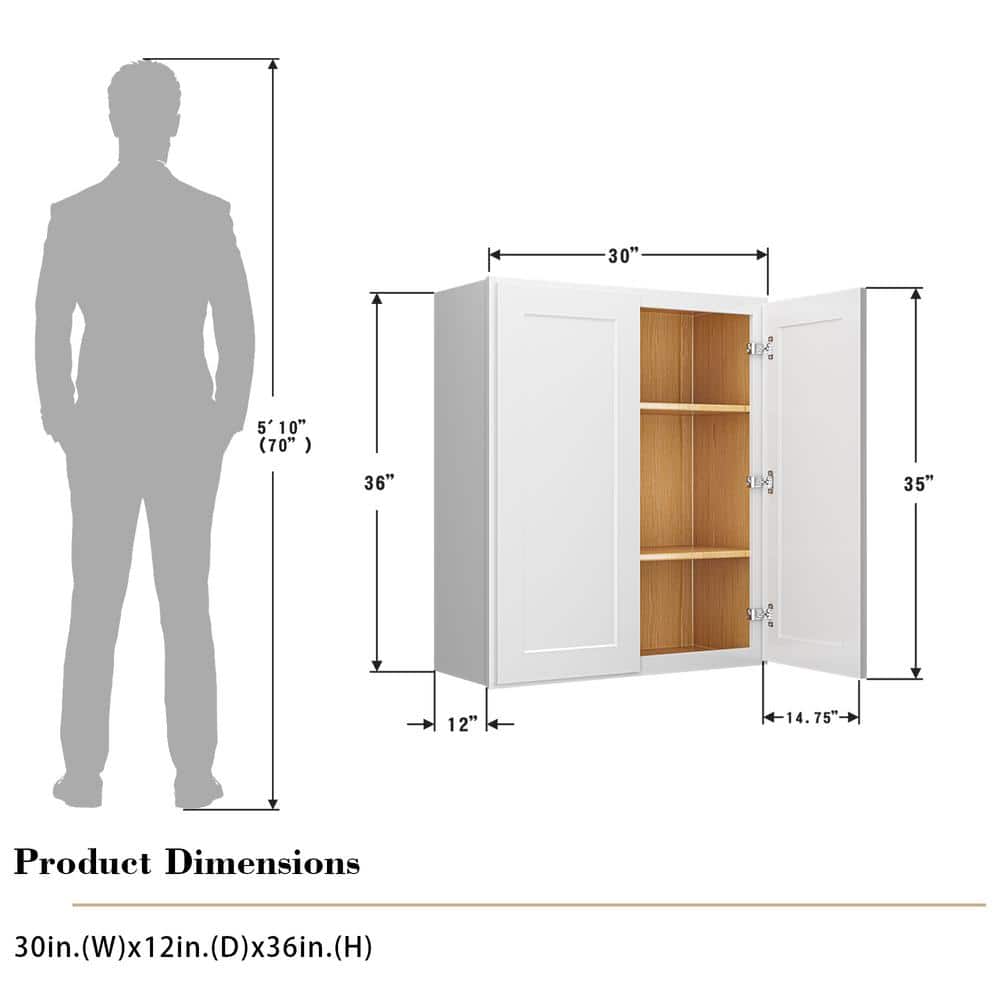 30 in. W x 12 in. D x 36 in. H Ready to Assemble Upper Kitchen Cabinet in White