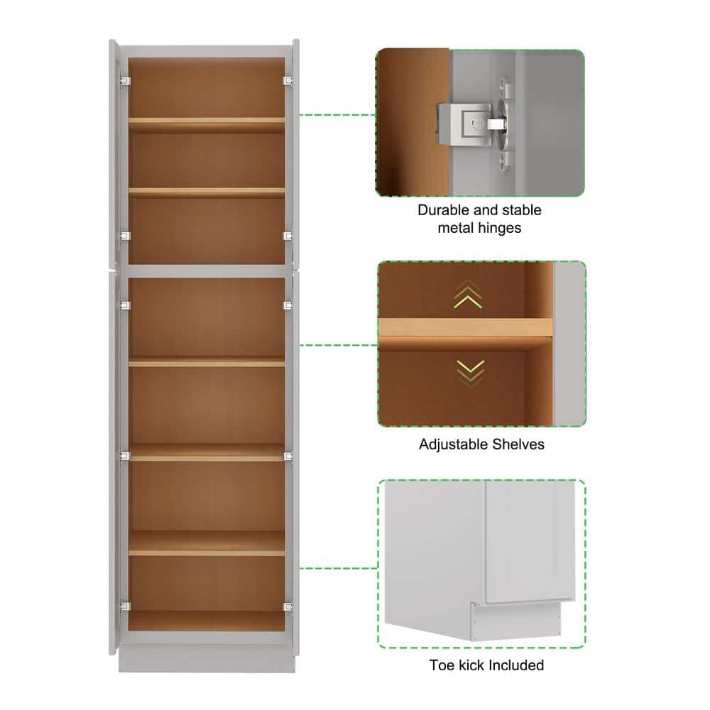 30 in. W x 24 in. D x 96 in. H in Shaker Dove Plywood Ready to Assemble Floor Wall Pantry Kitchen Cabinet