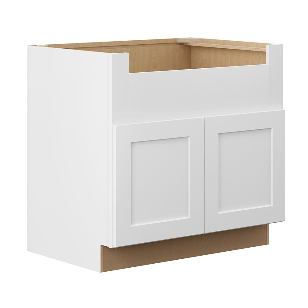 Shaker Ready To Assemble 36 in. W x 34.5 in. H x 24 in. D x Plywood Sink Base Kitchen Cabinet in Denver White