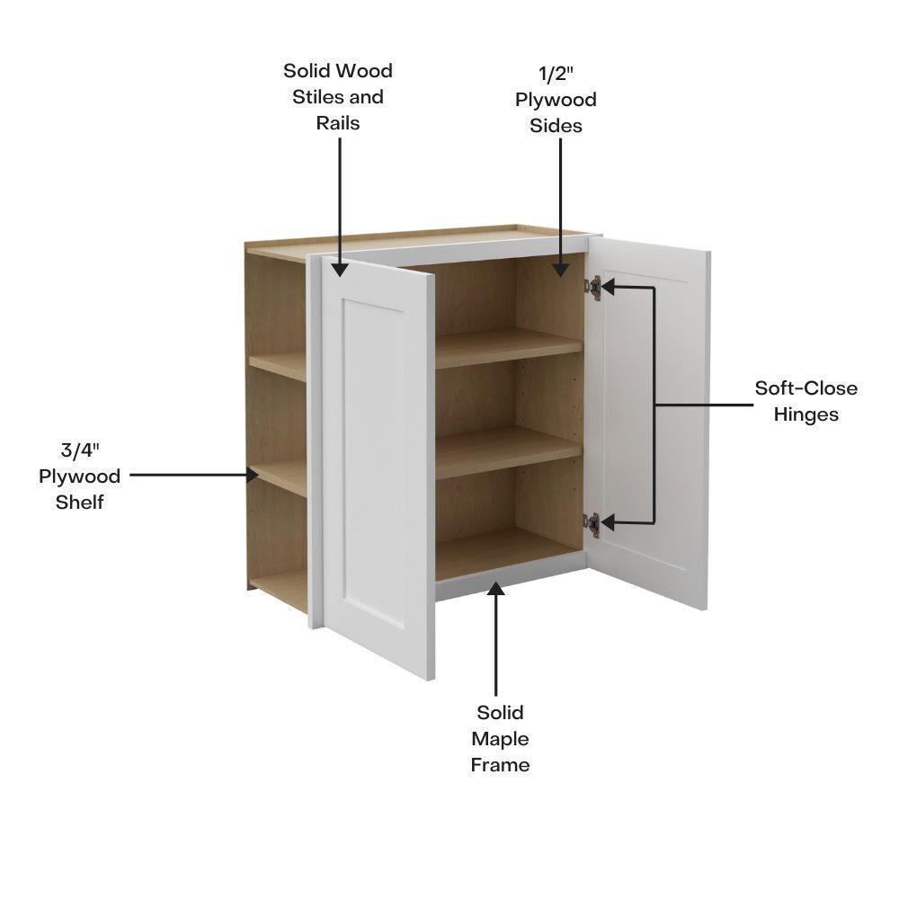 Shaker Ready To Assemble 30 in. W x 30 in. H x 12 in. D Plywood Wall Kitchen Cabinet in Denver White Painted Finish