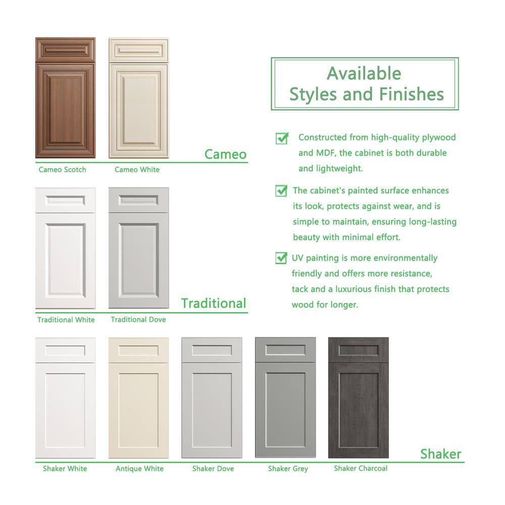 - Elegant Finish: Stylish Shaker Dove paint adds a sophisticated touch that protects the cabinet.